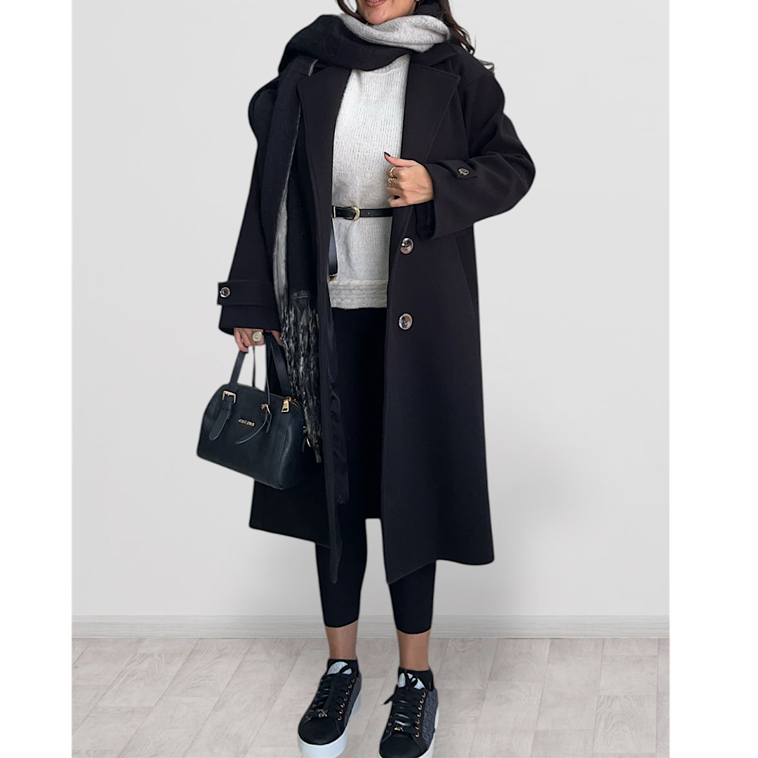 پالتو ویرا جنس فوتر دور بازو ۴۲ دور سینه ۱۲۰ قد ۱۱۵ مناسب ۳۶ تا ۴۲ یقه انگلیسی جیب فیلتاب چاک در قسمت پشت استرکشی شده لایی کشی شده ارسال محصول ۴ تا ۵ روز کاری