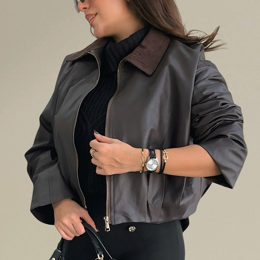 کاپشن چرم راکا (قهوه ای)ناموجود